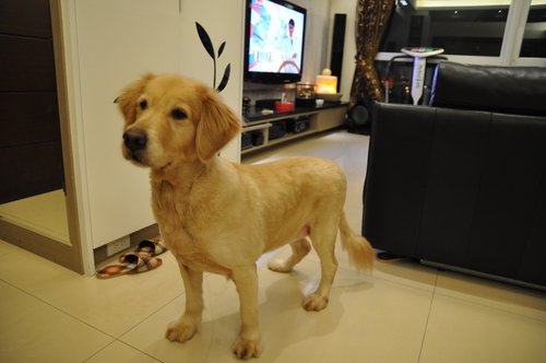 有著大大的骨架卻只有26.5公斤!! 全身的毛都黏成條狀 >.<