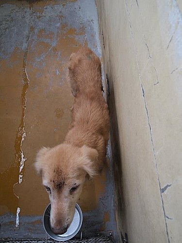 看到一個讓我很心疼的毛孩子 是一隻跟紙板一樣瘦的黃金弟弟