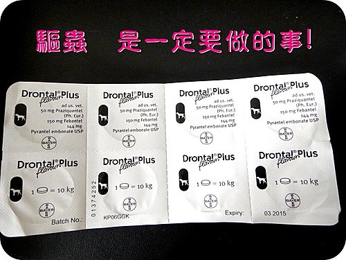 每三個月一次的體內驅蟲 主要是保護狗狗們在出門走在地上嗅嗅聞聞時 不會讓接觸舔入的蟲卵而讓蟲在身體裡變成成蟲