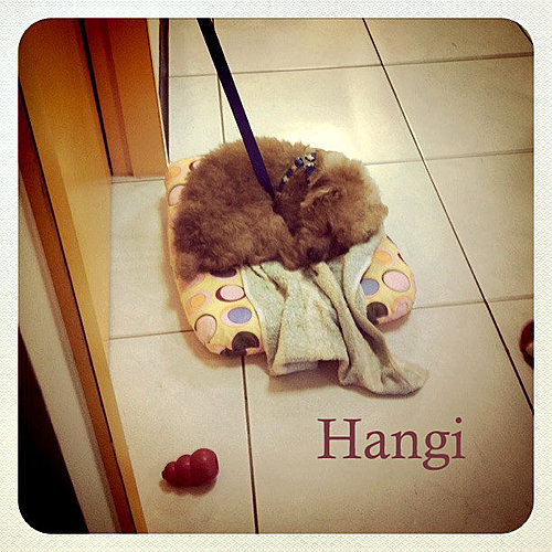 從今以後 大家好 泰迪變番薯 Hangi 憨吉嘍~ 特此公告 ( 憨吉是新爹娘給牠取的 連狗牌都刻好了 )