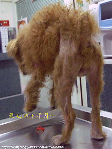 無毛的皮膚上 觸目驚心的全是紅疹和斑點 眼睛周圍也已經脫毛狀態~ 皮膚發紅~
