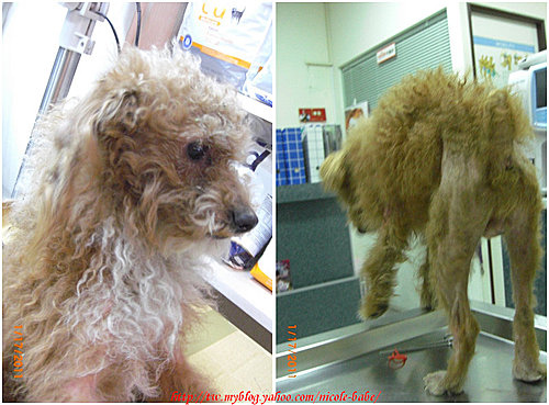 牠身上還有一半的糾結的毛 發出陣陣惡臭