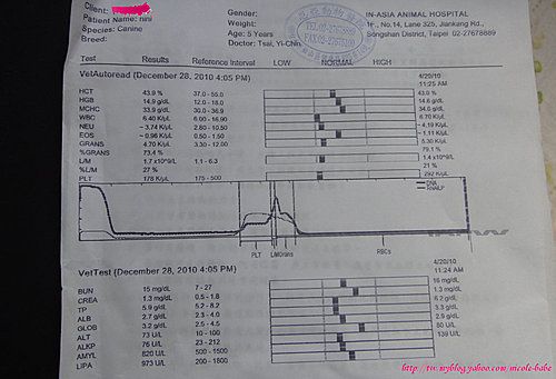 為求慎重起見 在我的要求下 先幫妮妮做了血液檢查