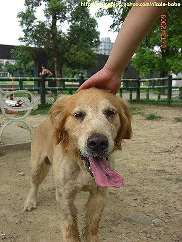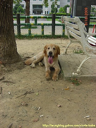 問了附近蹓狗的狗友們, 沒有人認得牠, 這隻黃金是個生面孔,