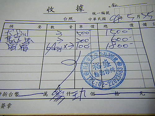 經過獸醫師的打折~變成一隻一天100元~ 也就是三隻300元/天