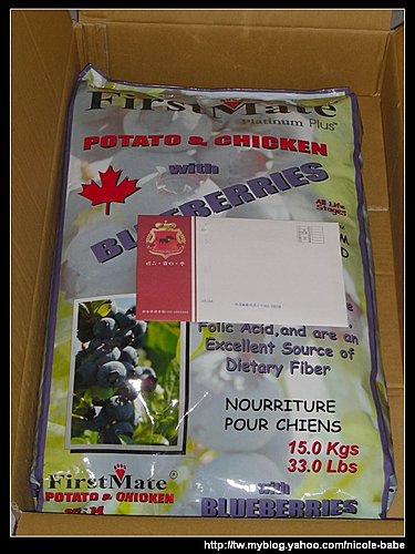 今天收到新飼料嚕 妮妮的小狗頭無法從鏡頭中移開~只好入鏡啦!