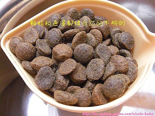 新的飼料 的確每個顆粒大小不完全相同 色澤也有差別~