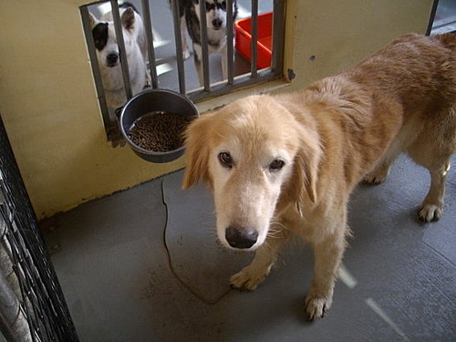 B 棟第 9 欄的母黃金, 會坐下握手, 以前一定也曾有人飼養過後棄養的, 她真的.......超乖超乖超乖.....真想牠能有個家