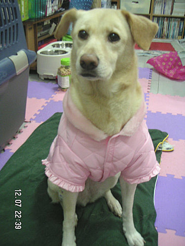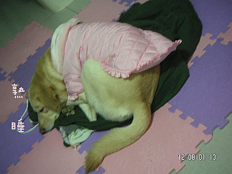 這件衣服牠似乎很喜歡唷~ 真開心~ 還穿著睡覺唷~