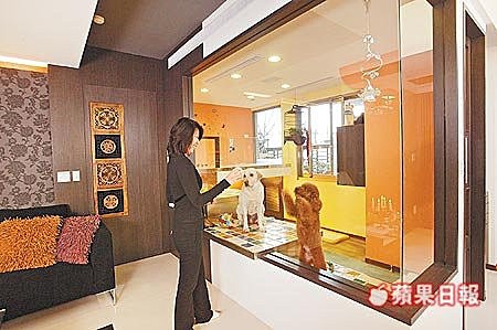 用玻璃牆隔出寵物房,內部還設計階梯,讓狗兒們擁有自己的玩樂天地,主人也能隨時注意到寵物的一舉一動。黃競鋒攝