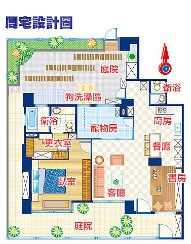 格局:主臥、寵物房、客廳、書房、餐廳、廚房、主衛、客衛