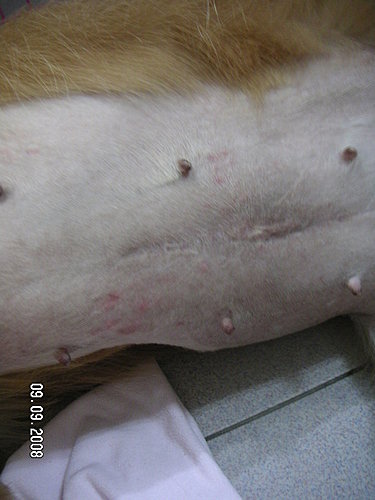 患部的毛髮我選擇局部幫她理掉~雖然好醜好醜~但她的健康和舒適永遠是首要考量